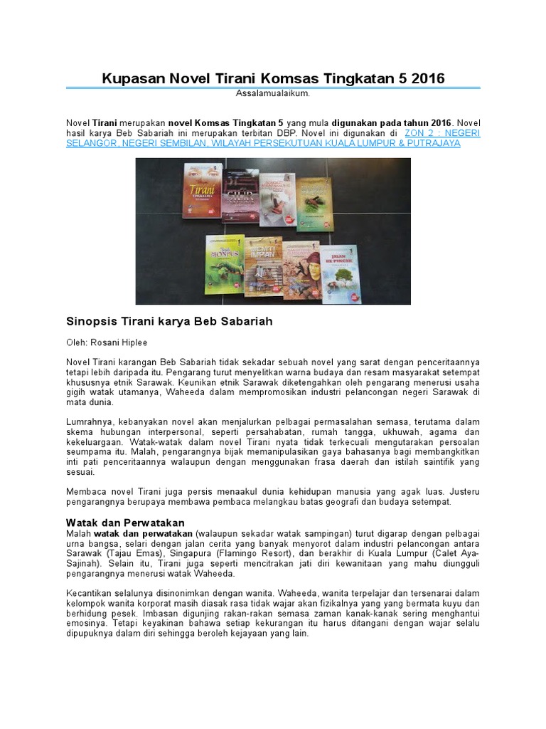 Kupasan Novel Tirani Komsas Tingkatan 5 2016 Pdf